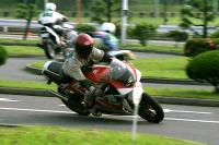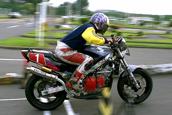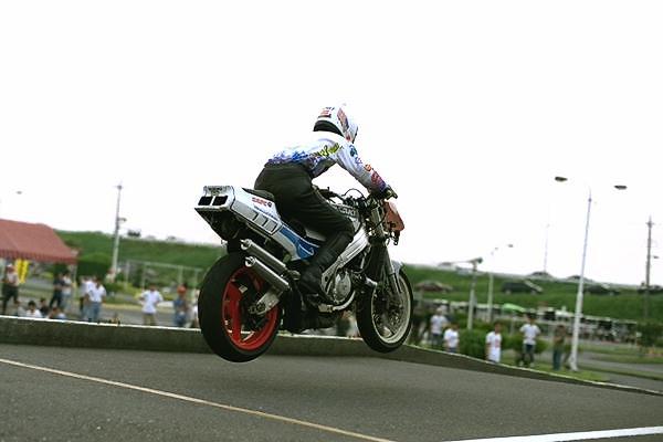 今回はA級のゼッケン9番、川島選手(NSR80)が1ヒート目でトップタイム、1'51.860をマーク。2ヒート目の最後の出走までにそのタイムは縮められることなく、さらに2ヒート目はコンマ6秒更新し1'51.228、大歓声のもと、堂々の優勝を飾りました。