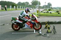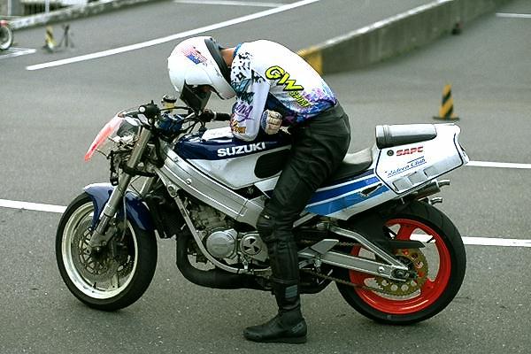 写真のA級ゼッケン1、作田選手は1ヒート目は最後の8の字で痛恨の転倒。それでもタイムは1'59.685(2P)。しかし2ヒート目ではきっちりとタイムを出して、1'52.388の2位。A級のゼッケン16、畠山選手は1ヒート目は1'55.827(1P)。2ヒート目ではフロントのみをGPR70から使い慣れたGPR50に戻し、3秒以上詰めて1'52.576で3位となりました。