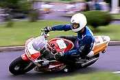 前置きが長くなったが、それから2ヶ月あまり過ぎた初夏を匂わせる5月17日朝、目を覚まし窓の外を眺めると大雨が降っていた。予報では夜明け前には上がるらしかったのだが、ずれ込んでいるのか。降り方を見てると午前中は完全なウェットだな、と感じる。準備を終えて出かける頃にはさらに降りが強くなってきた。走り出すとすぐにエンジンストール。またもキャブの不調か?前回は寒さでのアイシングが原因だったはずだから今回は何だ?何度再スタートしても200M走らないうちに同じ症状に。うーん、困った。こんな調子では大会どころではない。そんなこんなで5kmばかし走って「もしやガス欠か?」とコックをリザーブへ。ウソのようにRZは元気よく走り出した。普段あまりバイクに乗らないようになっているとはいえ、ガス欠の症状さえわからないとは恐れ入る。それまでのキックのしすぎでブーツカバーが破れてしまった…。