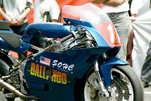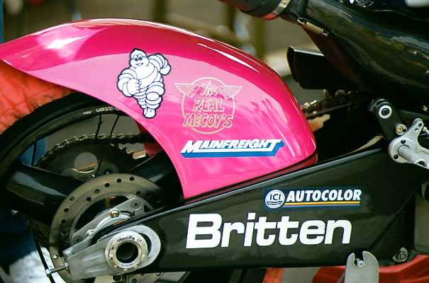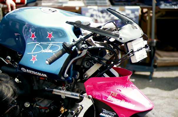 ブリッテンがいよいよ日本にやってきた!とは言っても、ブリッテンて何だ?私は3日前まで何も知りませんでした。松島さんの談話室でその話を耳にして、なんでもこんどのBOTTに来るらしい。また、それはすごいカスタムマシンらしい。ということでブリッテン(BRITTEN)のホームページでちょっと下調べ。急きょ仕事の休みも決まり、4/29、早起きして車を筑波へ走らせました。何せ、BOTTが何の略かも知らなかった人間ですから、その全日本ロードに匹敵する観客の多さに驚きました。入場料も全日本並!ちょっと財布には痛かった…。