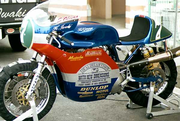 ブリッテンと見物客を二分していたその存在がチーム・MC・サンダンス。特にJPSばりの黒金のカラーリング、デイトナウェポン2。とにかくカッコいいです。カウリングの造形デザインも素晴らしいですね。ライダーのツナギもバッチリコーディネイトされていて、走っていてもカッコいいという、これで優勝してれば文句なし!
