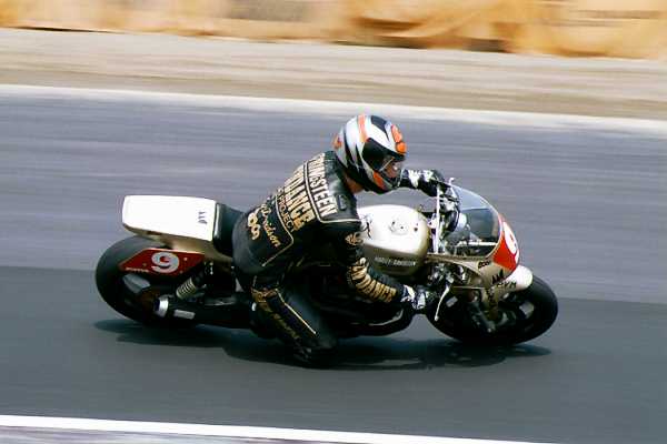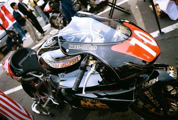 右はETクラスのアメリカ人、JAY SPRINGSTEEN(昨年のデイトナBOTの覇者)。この人もかなり有名な方らしいです。マシンはハーレーベース(らしい)サンダンス デイトナウエポン。排気量は1200。この人も残念ながら、いい走りが見れませんでした。