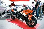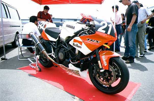 突然バトル・オブ・ザ・ツインに行けることになった。確か前回では平さんがTRXで優勝を飾っているレースだ。しかし、今回は平さんの出場は残念ながらなかった。が、SRカップでデモ走行を行うとの情報を得て、嬉々として筑波へ。上はタイラレーシングの出店でのひとこま。